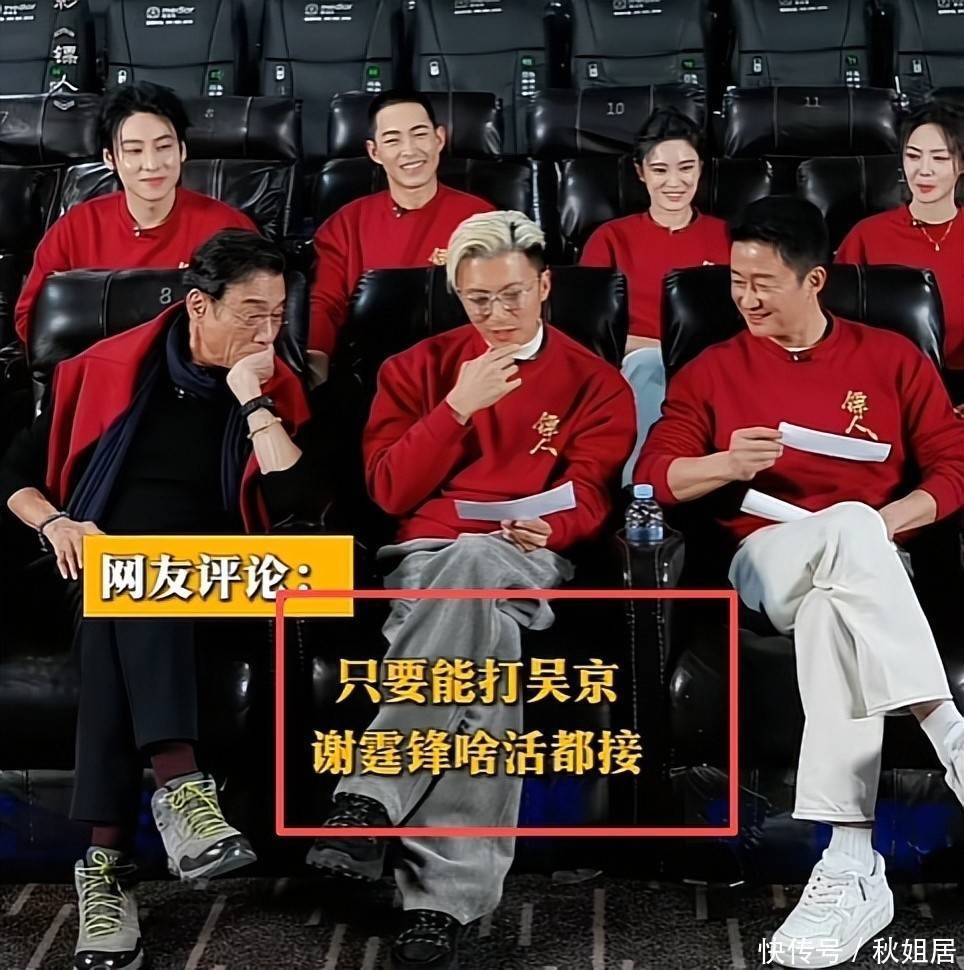 一位观众在现场互动环节递上手写便签“只要能揍吴京谢霆锋接啥都行”