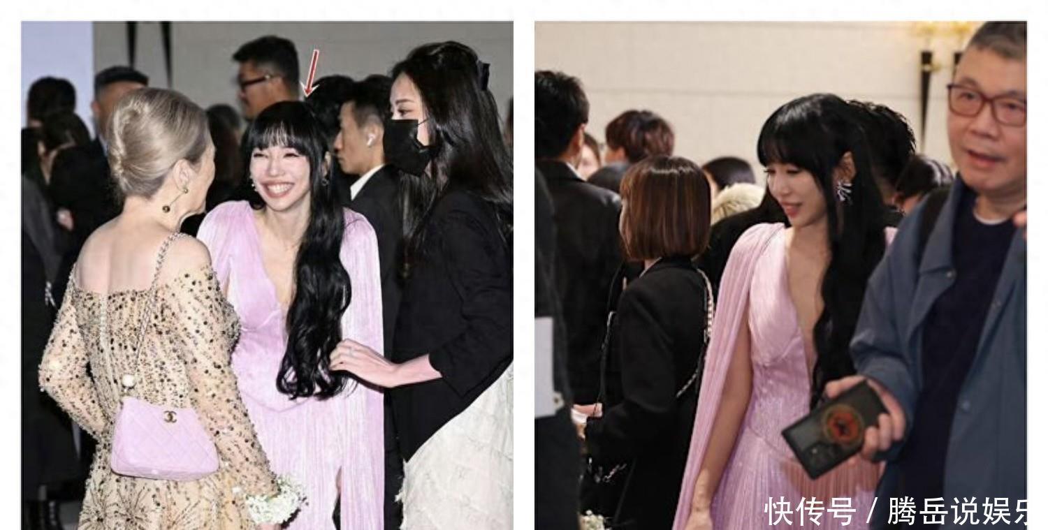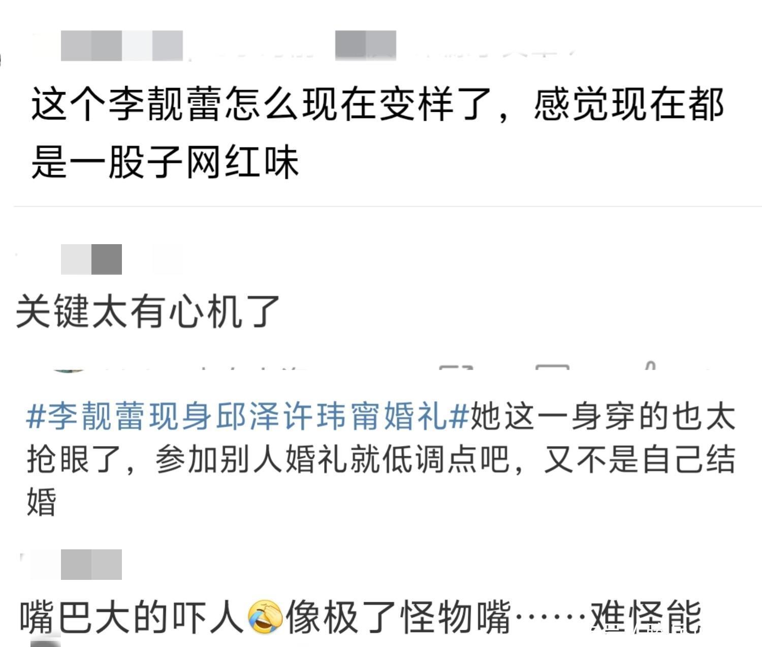 首先就是她穿着粉色深V裙,看着是件礼裙,有人指责她太过抢眼,完全不像参加闺蜜婚礼像是去抢风头的,其他人都穿的很低调,把主场留给新娘新郎。其次就是感觉她变样了,跟以前不一样,记忆中嘴巴也没那么大,有人说有种网红味。