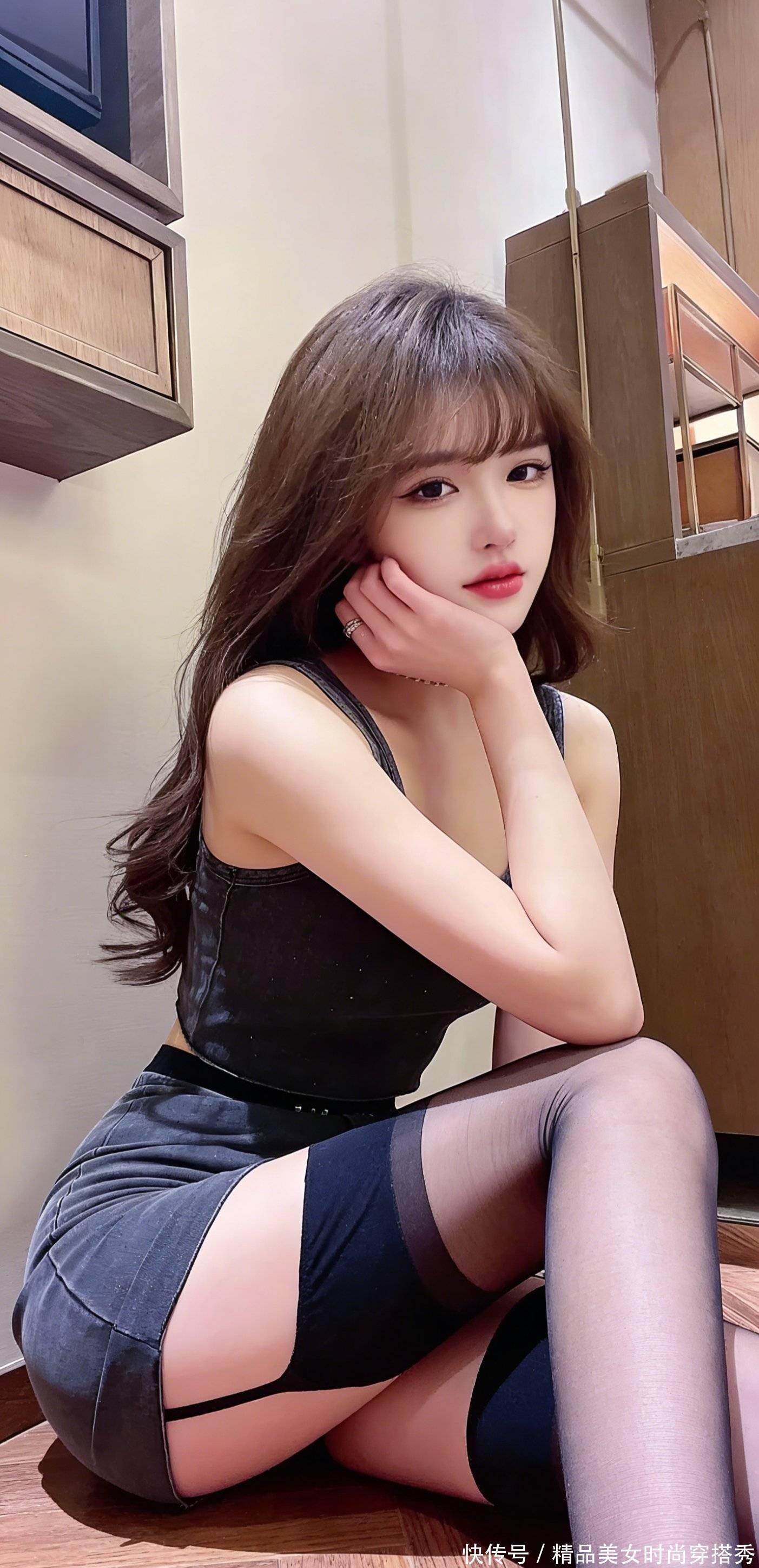 有人说黑丝是成年人的浪漫,我倒觉得,是藏在分寸里的诱惑 —— 不多不少,刚好勾得人心尖发痒,却又摸不到碰不着。就像我现在这样,膝盖抵着地板,手搭在膝头,眼神往你那边飘,你敢说,你没多看两眼?